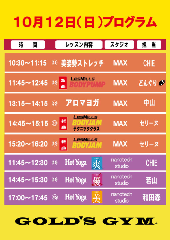 10月12日(土)13日(月・祝)スタジオプログラムのお知らせ