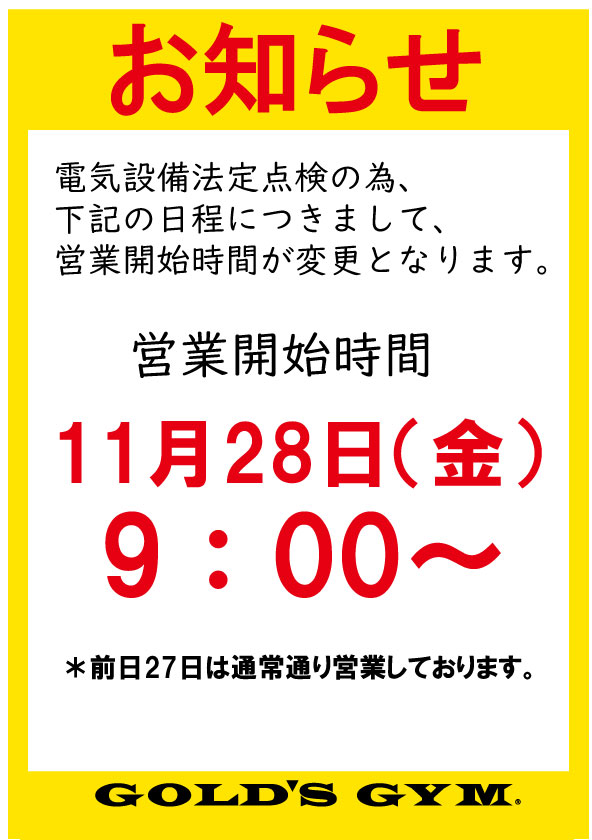 営業開始時間の変更のお知らせ