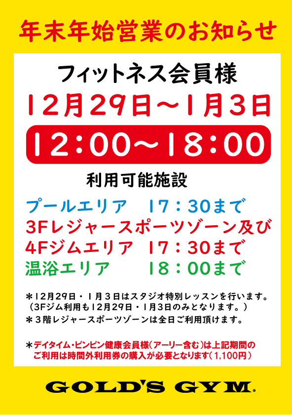 年末年始のお知らせ